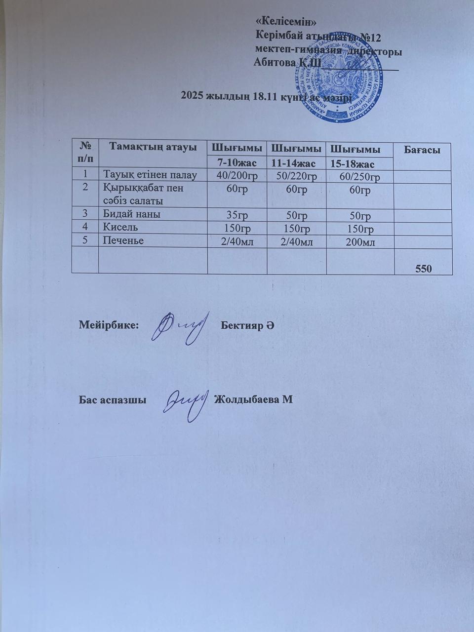 18.11.2025ж күнгі ас мәзірі » СШ №12