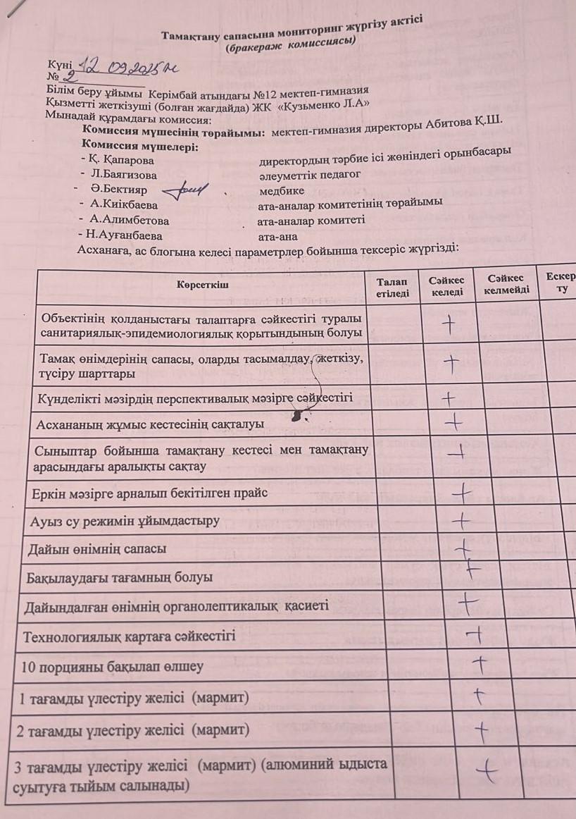 Бракераж комиссияның АКТ-сі » СШ №12