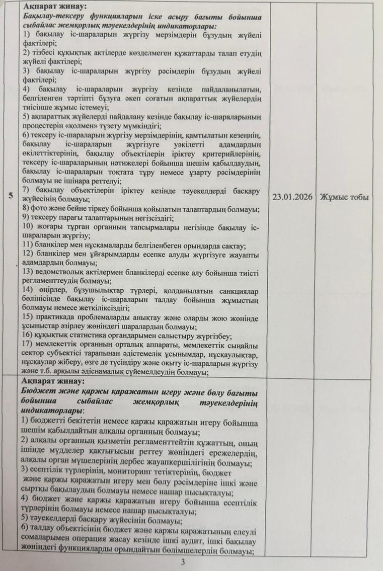 » Сыбайлас жемқорлық тәуекелдеріне ішкі талдау жүргізу жөніндегі жұмыс жоспары