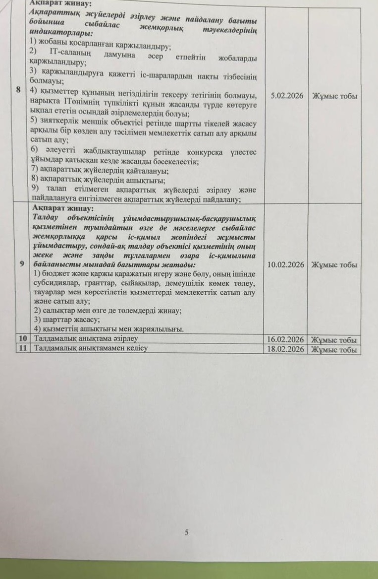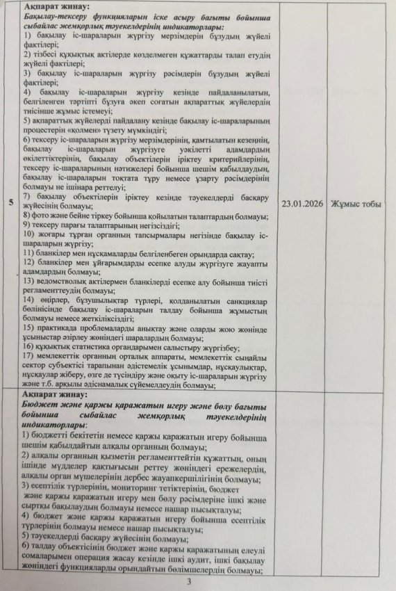 Сыбайлас жемқорлық тәуекелдеріне ішкі талдау жүргізу жөніндегі жұмыс жоспары