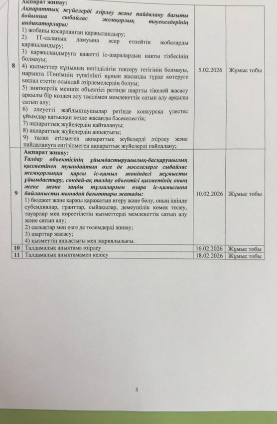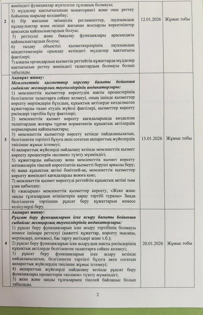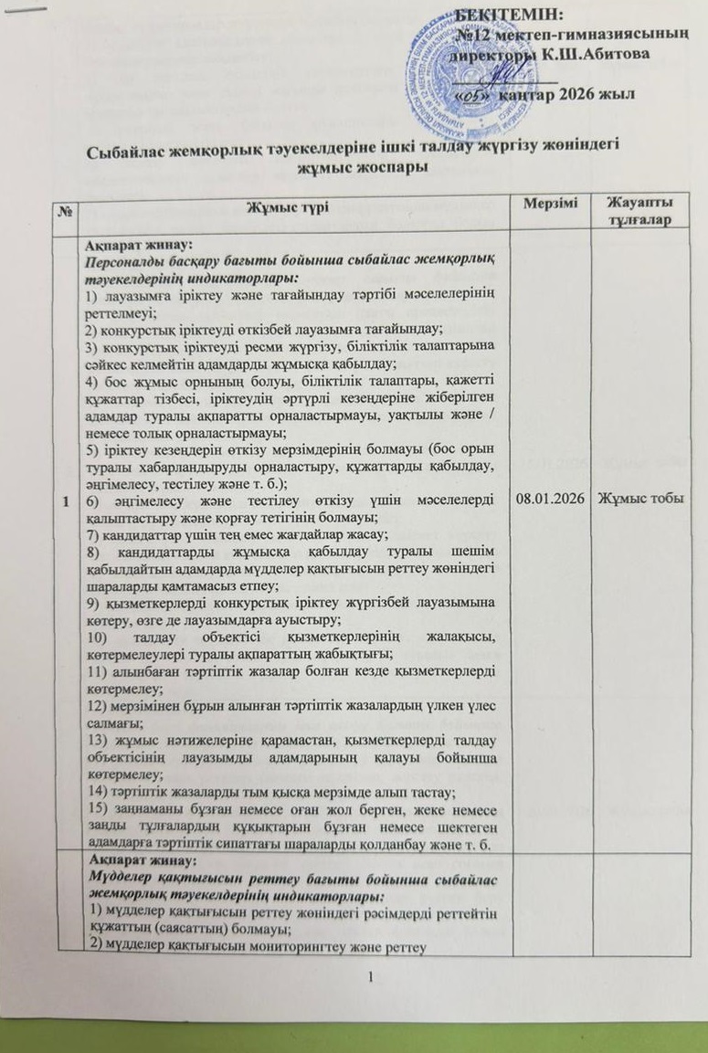 06 январь 2026 0 1 2 3 4 5 Сыбайлас жемқорлық тәуекелдеріне ішкі талдау жүргізу жөніндегі жұмыс жоспары