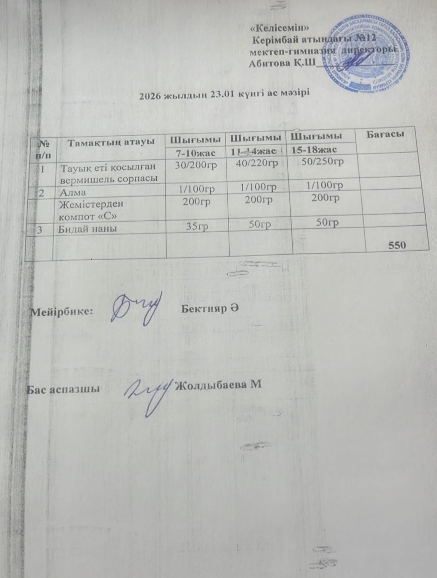 23.01.2026ж ас мәзірі » СШ №12
