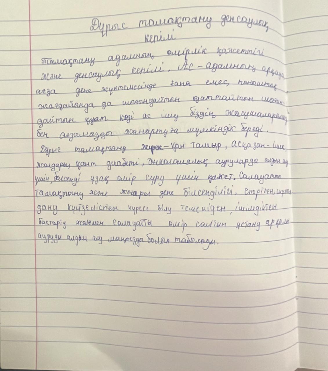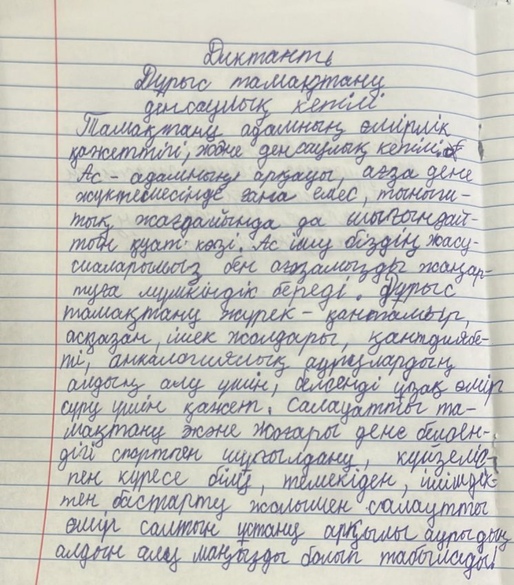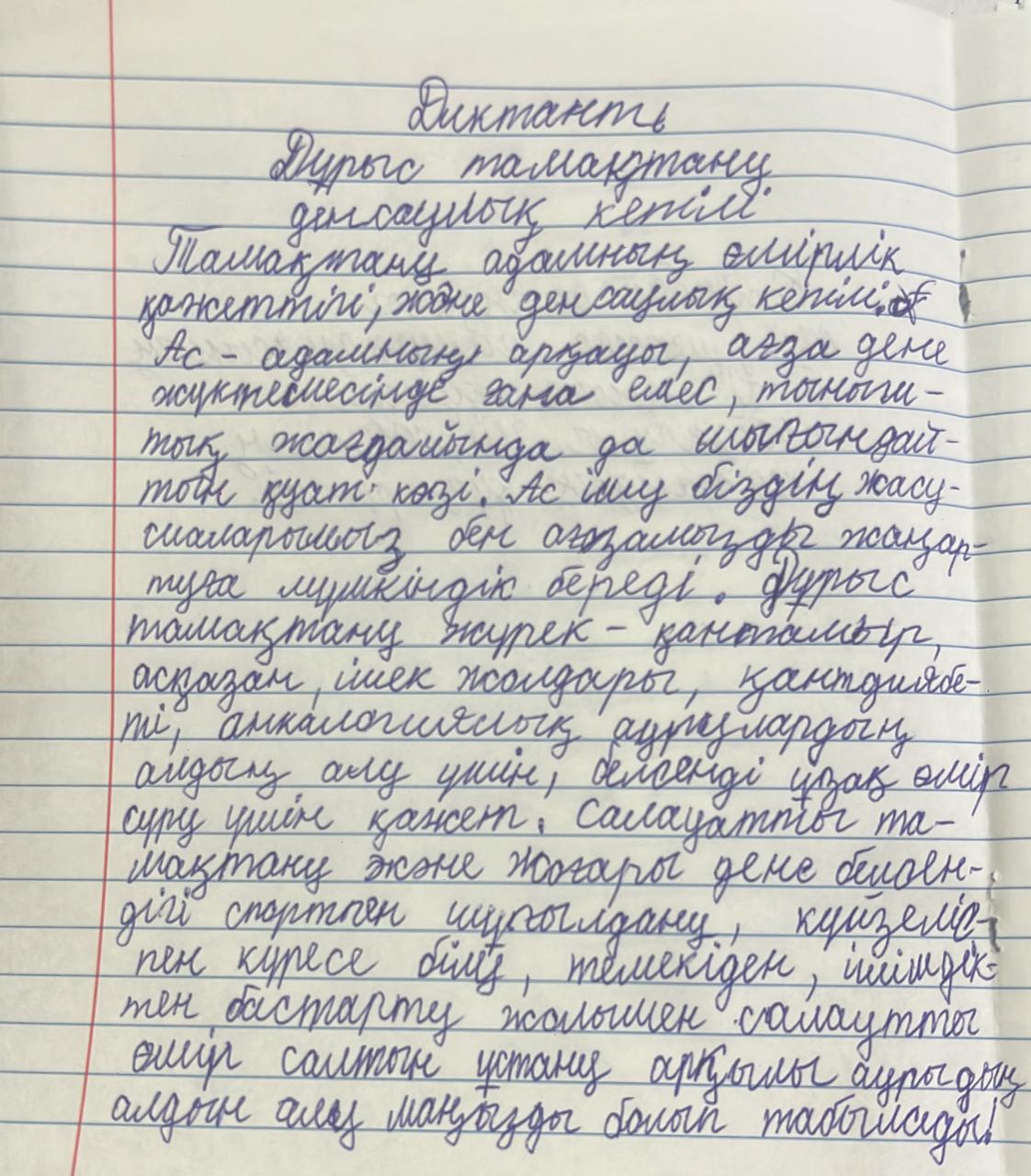 Дұрыс тамақтану-денсаулық кепілі. 4-5сыныптардан алынған диктант